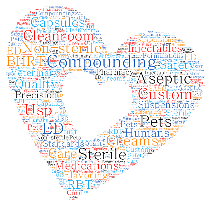 - Injectables: Custom-dosed medications for intravenous (into the vein), intramuscular, or subcutaneous (under the skin) injection.